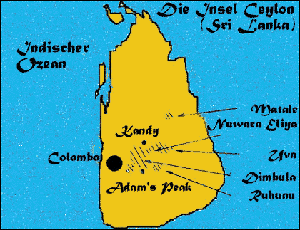 Wichtige Anbauregionen auf Ceylon |