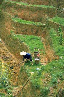 Teebauer am Ausbessern der Terrassenfelder in Xiping |