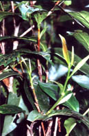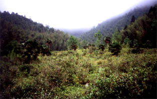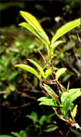 Fast wild wachsen die Teesträucher im nebligen Hochland des Wu Yi Shan. Die Sträucher werden nur wenig zurückgeschnitten. Die Ernte ist ausgesprochen mühsam. |