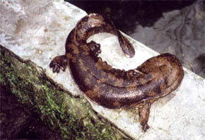 Eines der seltenen Exemplare des Chinesischen Riesensalamanders (Jungtier !) - diese Tiere genießen totalen Schutz seitens der Regierung. |