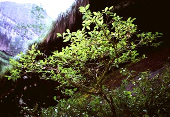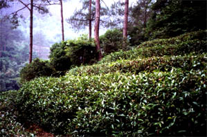 Die legendären "Steintees" - Yien ChaEine fast schon zum Mythos erhobene Kategorie von Oolongtees, die im felsigen Bergvorland gedeihen, sind die seltenen Steintees. Natürlich sind diese Tees ohne Steinzusätze... der Name ist in der deutschen Übersetzung etwas irreführend. Die englische Bezeichnung führt da schon eher zum Wesen dieser Tees: Rocky Cliff Teas ...weißt auf die felsige Umgebung hin, in denen die winzig kleinen Teegärten gedeihen. Insgesamt 99 Felsformationen bilden eine einzigartige Landschaft, die vom "Nine Bend River" in unzähligen Mäandern durchzogen wird. Nur mit eigenwilligen Bambusflößen kann man sich auf dem Fluß fortbewegen, an einigen Stellen ist er nur knietief, an anderen erreicht der Flößerstab nicht mal mehr den Grund... Die Felsen bilden Strukturen, die riesigen Skulpturen ähnlich sind: ein "Sitzender Adler", der "Thron der Götter", die "Jadeprinzessin" und die "Tigerkrallenwand" sind nur ein paar der bekanntesten... Oftmals sind nur schmale Schluchten zwischen den Felsen bebaubares Land, manchmal ein Talkessel, umgeben von kompakten Felswänden, in denen sich ein kleiner Teegarten befindet. Der Boden ist durch die Erosion mit Mineralien angereichert, die von den Felsen ausgewaschen wurden. Diese Mineralien sind mit verantwortlich für den einzigartigen Geschmack der Steintees. In jeder Schlucht, in jedem Felsengrund herrscht ein eigenes Mikroklima. Manchmal scheint die Sonne nur an zwei Stunden in die Schlucht, den Rest des Tages bleiben die Teepflanzen in einen feuchten Nebel gehüllt. All diese Bedingungen lassen Tees reifen, deren Geschmack schon seit vielen Jahrhunderten in zahlreichen Lobgesängen gepriesen wurde. In den Zeiten des Kaiserreichs waren die Steintees ausschließlich dem Kaiserhof vorbehalten. Erst zu Zeiten der chinesischen Republik durften auch Normalsterbliche diese Tees genießen. Es war jedoch schon damals ein immens teures Vergnügen, solche exquisiten Tees zu trinken. Nach der Machtergreifung durch Mao's Truppen wurde es still um die Teelegenden aus dem Wu Yi Shan. In den Teegeschäften waren sie nicht mehr aufzufinden und auch die Teehäuser mußten schließen...Orte des "bürgerlichen Müßiggangs" hatten keine Daseinsberechtigung mehr im kommunistischen Reich Mao Tse Tungs. |