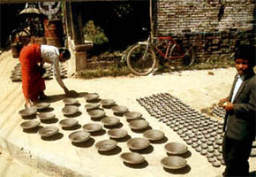 Keramiken werden in Nepal wie in alten Zeiten von Hand gefertigt und nachdem sie in der Sonne getrocknet wurden noch gebrannt. |