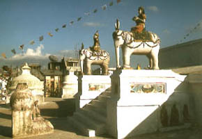 Im Tempelheiligtum von Svayambudnath im Kathmandu-Tal |