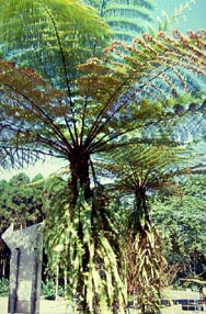 Tropische Farnbäume gehören zur Vegetation auf der Insel |